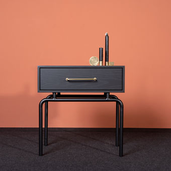 פריטי הריהוט של קולקציית "שחור אופטימי" משלבים עץ, מתכת ופליז בקווים גיאומטריים עדינים